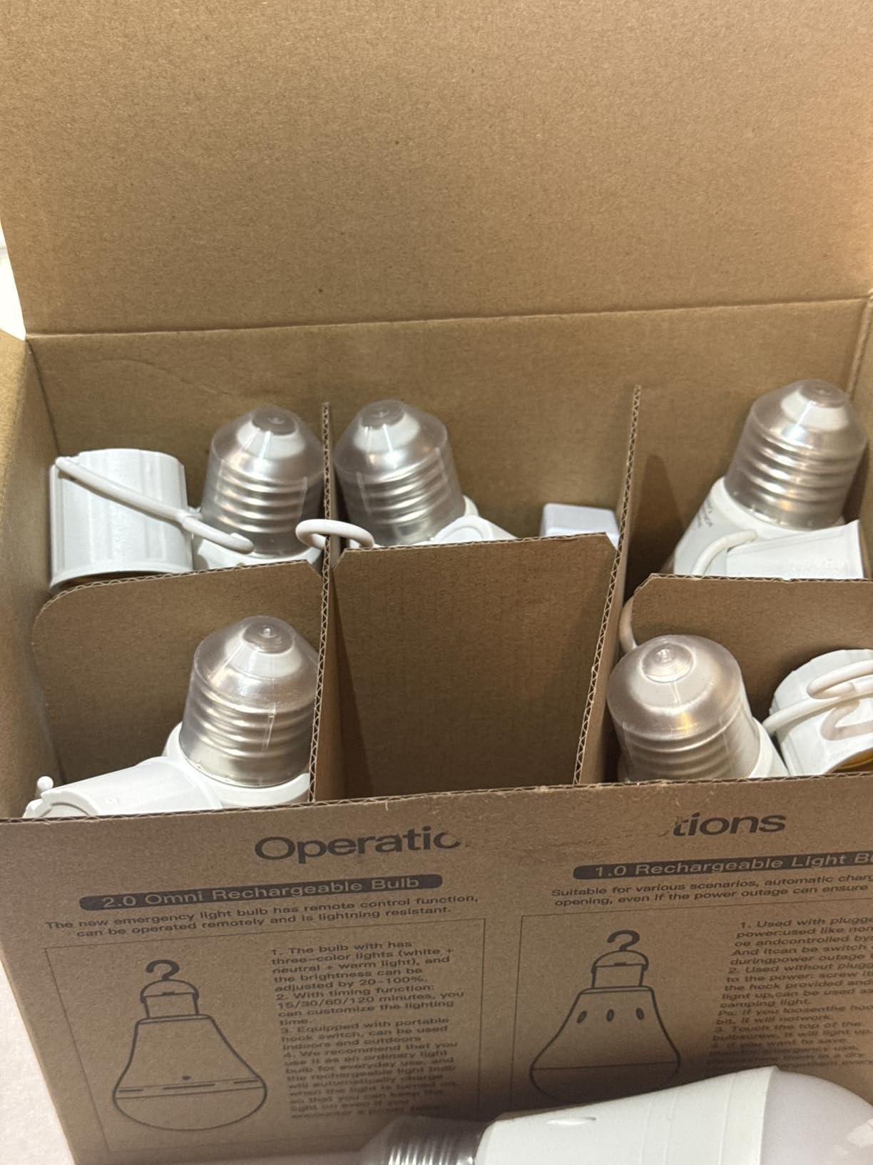 Each bulb features a built-in 1200mAh rechargeable battery that charges automatically while connected to your regular light fixture.